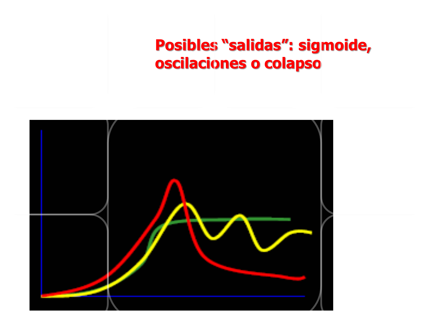 Por otra parte, se debe tener en cuenta que, físicamente, la función exponencial SIEMPRE es transitoria y las posibles “salidas” de un crecimiento exponencial son: una sigmoide, oscilaciones o colapso.