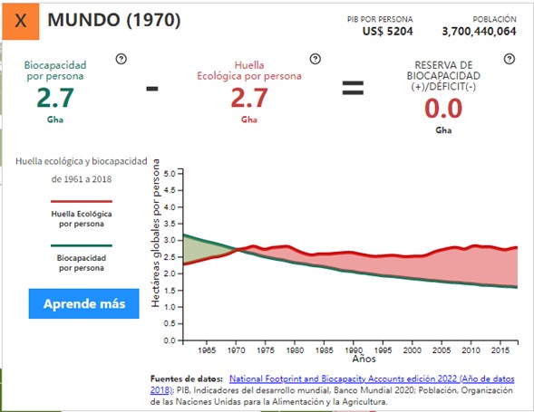 Desde la década de 1950 cuando, como lo propone Will Steffen[1], dio inicio la Gran Aceleración, la sinrazón productivista ha conducido a incrementar exponencialmente la presión de la humanidad sobre la ecosfera, aumentando su Huella Ecológica hasta que, en 1970, se superó la Biocapacidad del planeta, generando a nivel global un déficit ecológico crónico.