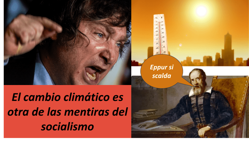 El cambio climático es otra de las mentiras del socialismo. Hay toda una agenda de marxismo cultural y parte de esa agenda es, a ver, hace diez, quince años, se discutía que el planeta se iba a congelar, ahora discuten que se calienta… o sea… dale, loco… o sea, aquellos que conozcan cómo se hacen esas simulaciones van a ver que las funciones están sobresaturadas en determinados parámetros a propósito para generar el miedo más acá en el tiempo. – Javier Milei, entrevista online con Julián Serrano en 2021