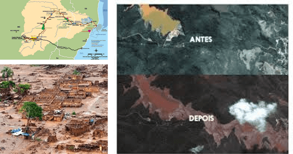 Se rompió la represa de residuos mineros (rellenos de colas de mineral) del complejo minero de Samarco —una empresa conjunta entre Vale y BHP Billiton— liberando decenas de millones de metros cúbicos de lodo tóxico en forma de “tsunami de desechos”. El derrame devastó comunidades —especialmente el pueblo Bento Rodrigues — provocó decenas de muertes (19 personas según los balances oficiales) y dejó anegadas casas, escuelas e infraestructuras. Los lodos mineros contaminaron ríos y cuencas enteras, especialmente la del Río Doce, afectando ecosistemas, biodiversidad, fuentes de agua, comunidades ribereñas y el abastecimiento de ciudades. Los sedimentos llegaron hasta el Atlántico, más de 600 km río abajo. La catástrofe se considera el peor desastre ambiental del país hasta entonces, con efectos ecológicos, sociales y económicos extremadamente prolongados.