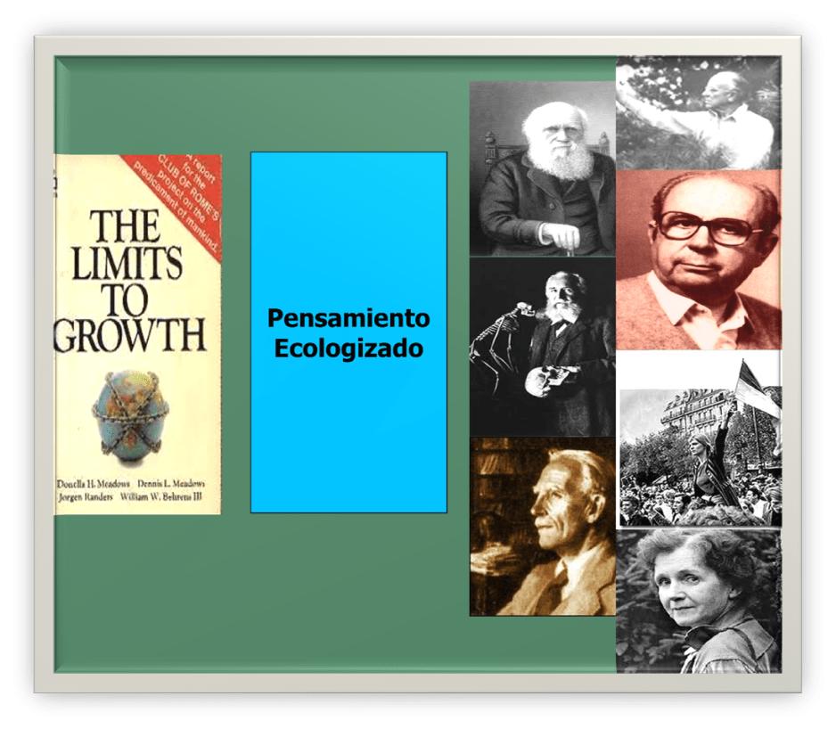 - Crítica al crecimiento y al imaginario del progreso ilimitado: Emergencia de la conciencia de los límites biofísicos y cuestionamiento del crecimiento material indefinido como horizonte civilizatorio.